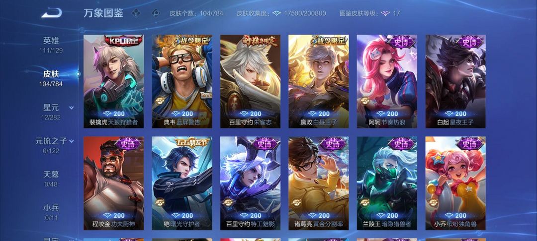 装备描述:不要挂机!皮肤如图 武则天海洋之心 全息碎影 天魔缭乱 鼠年限定系列等等
