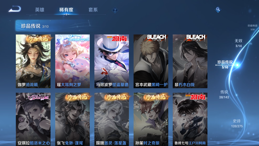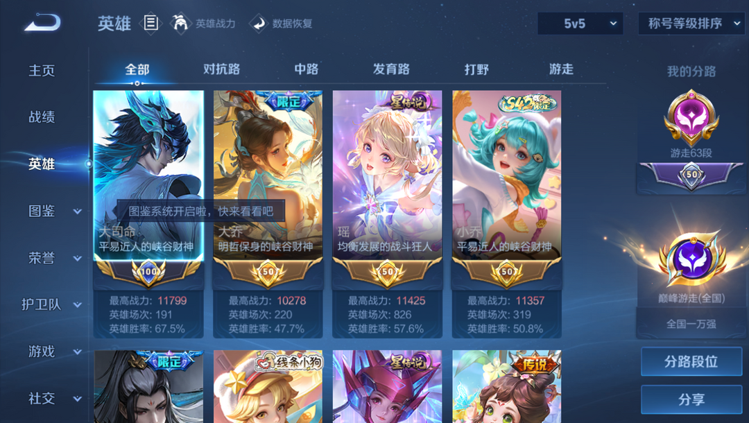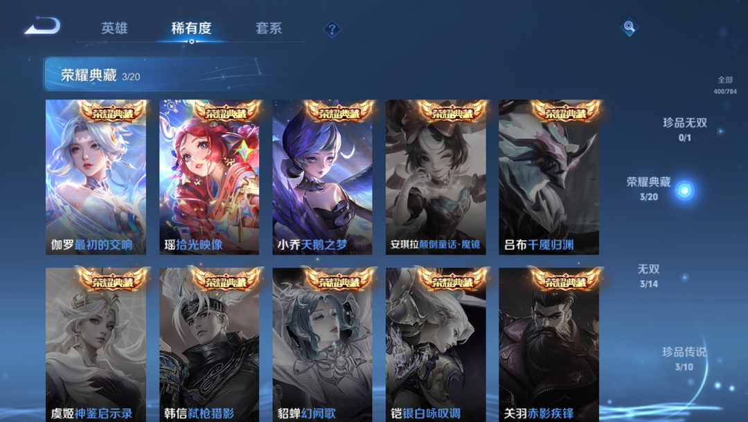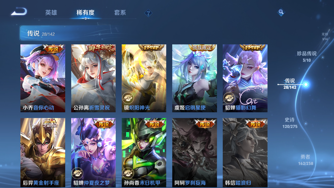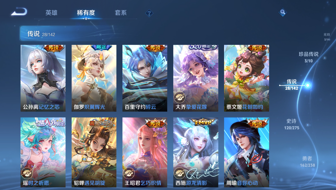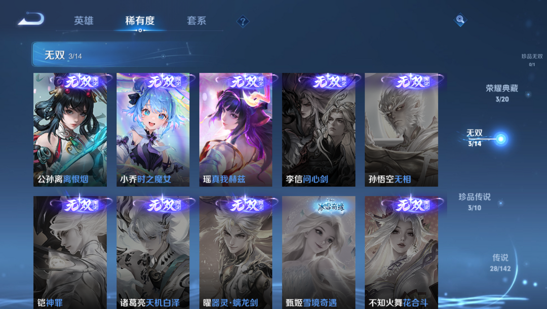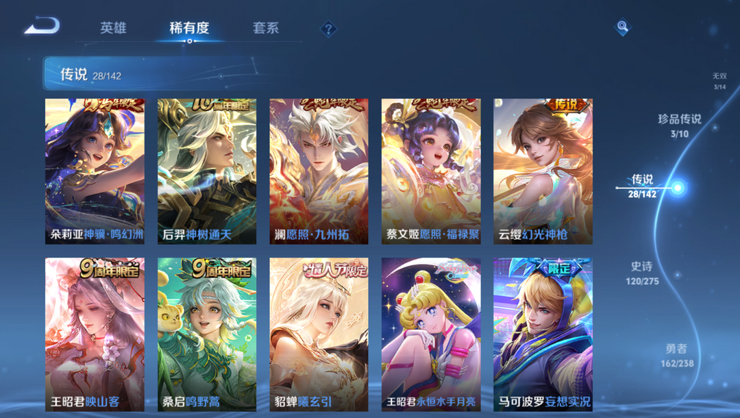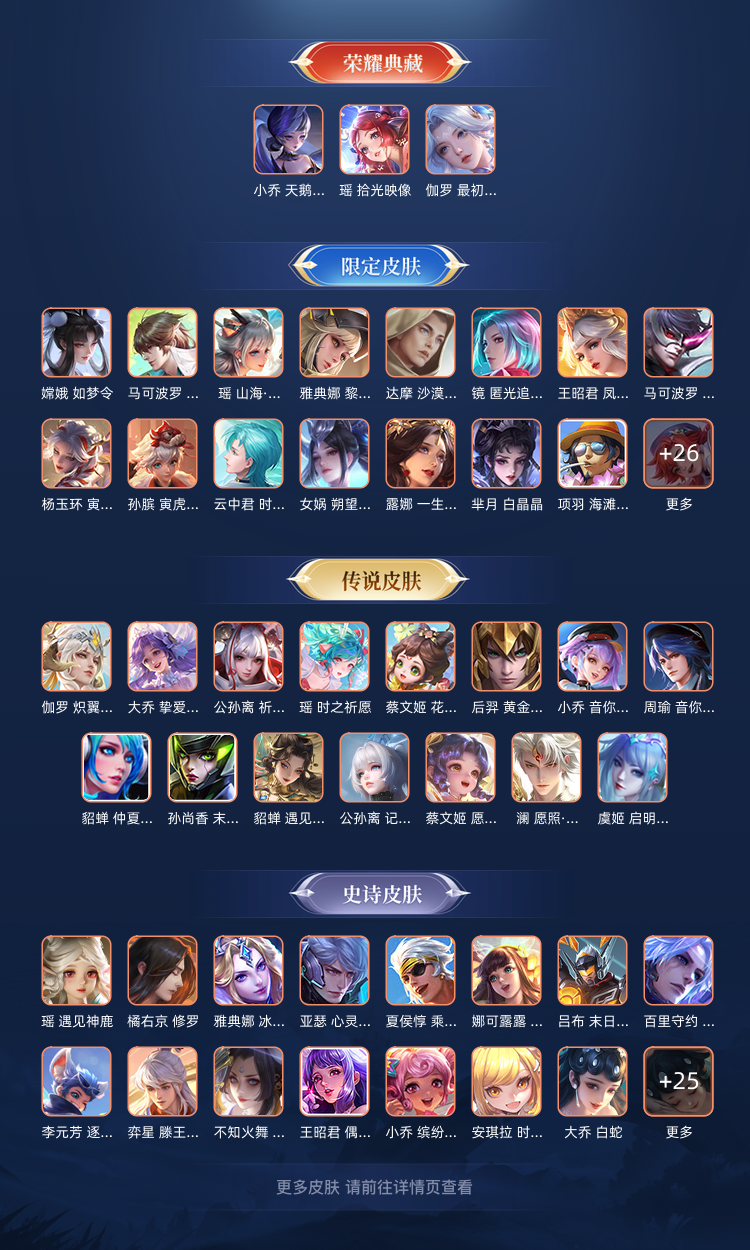 瑶全皮♥万战小国大司命♥万战金标大乔♥瑶♥小乔♥400皮v9♥3水♥3无♥28传♥游龙清影♥沧流箭♥