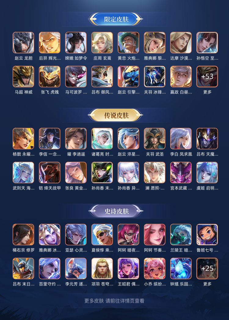李逍遥+五虎上将全皮等多款限定皮肤,全部英雄和满铭文