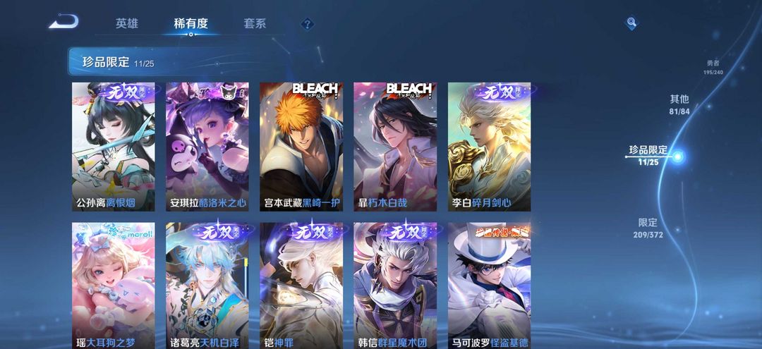 无双V10,541皮肤,六典藏、离恨烟、碎月剑心、神罪、天机白泽、怪盗基德、江户川柯南