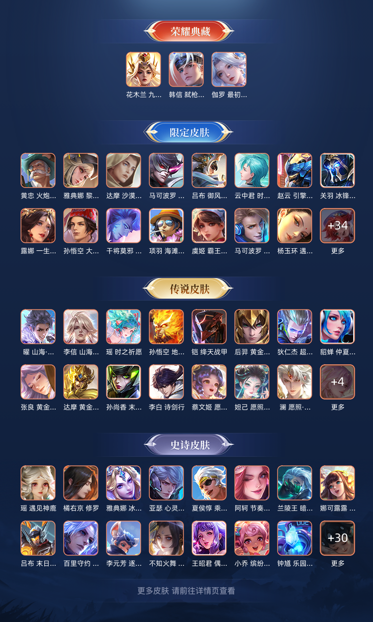 三,典藏。20多个传说。10来个限定400多个皮肤。还有貂蝉的无双真品。