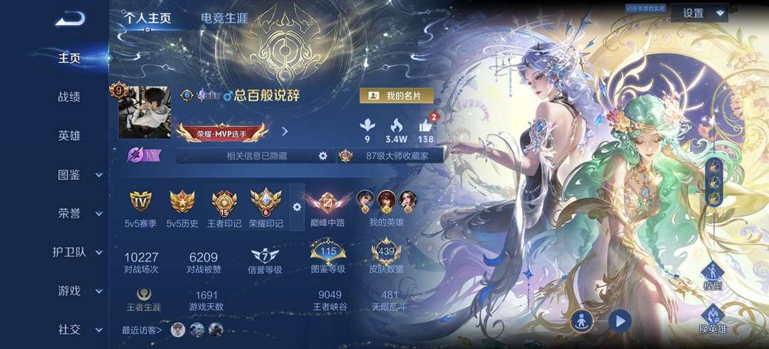 装备描述:1个珍品无双,3个无双,5个典藏,3个珍品传说,52个传说,150个限定,439个皮肤,最高传奇王者