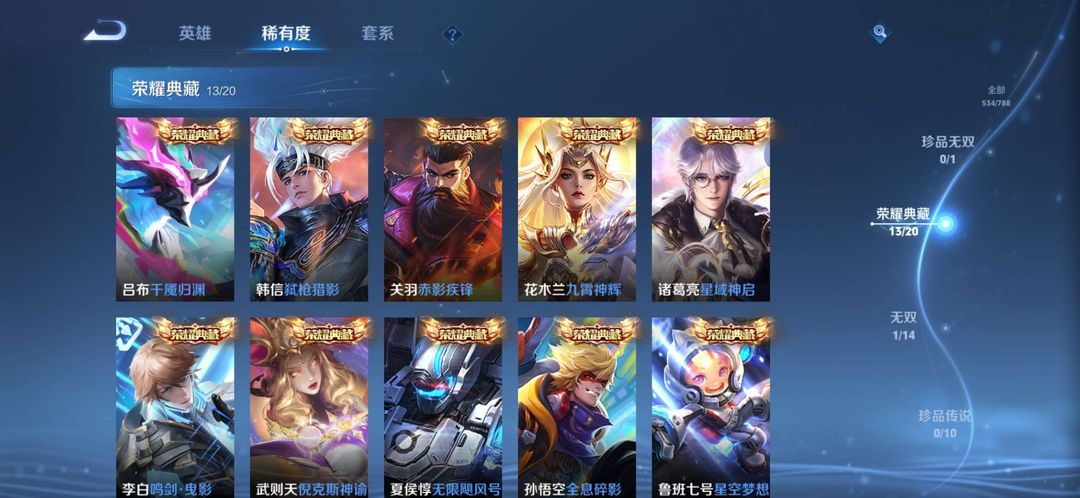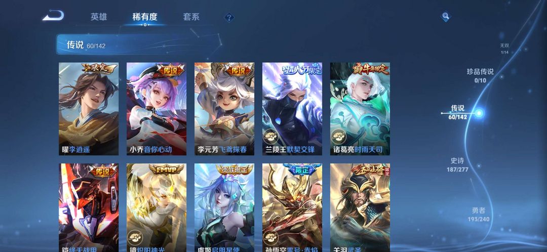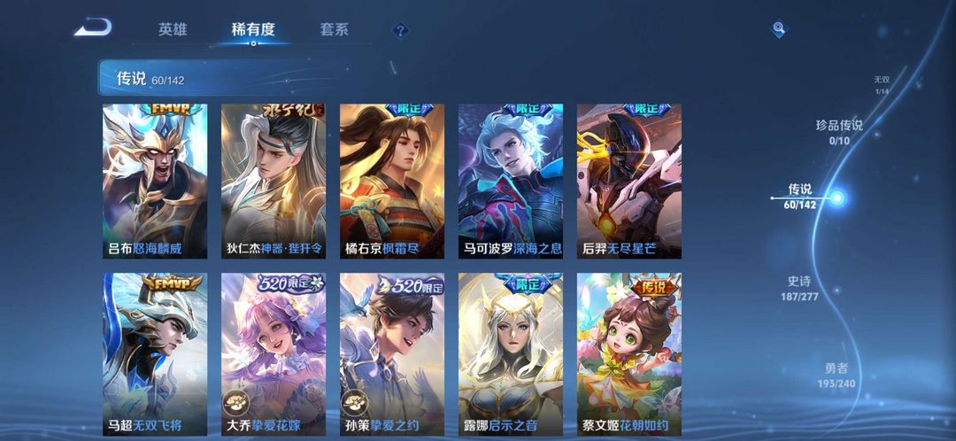 [V10 535皮]▽13典藏60传说1无双187史诗★青丘九尾