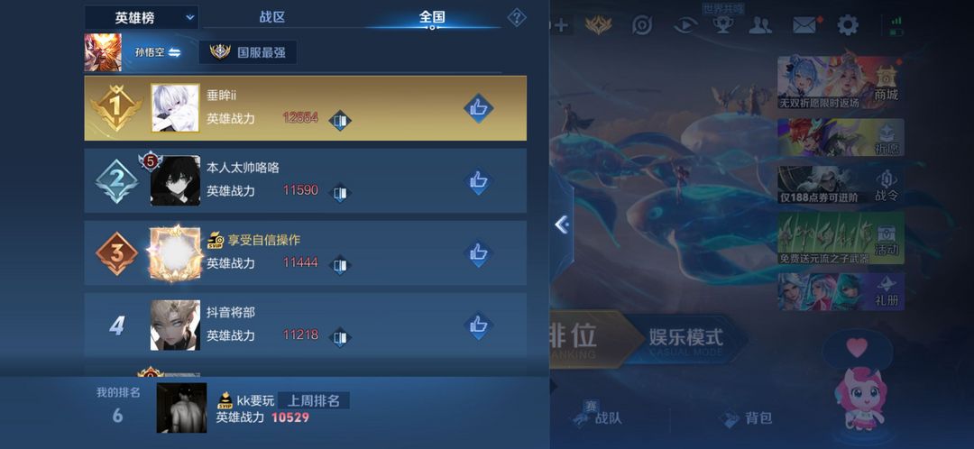 【国标打野顶配号出租】全国五十强孙悟空|巅峰万强1950分|全国一千强打野魔方亮|至尊宝情人节限定皮