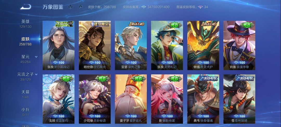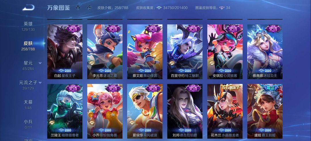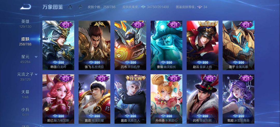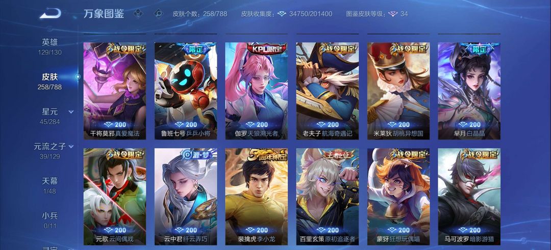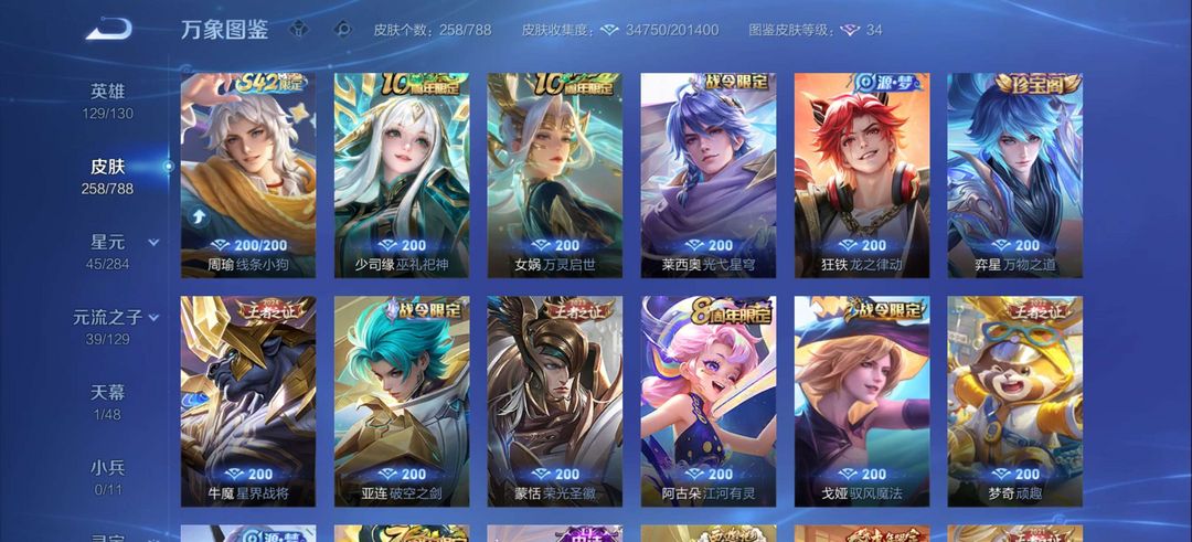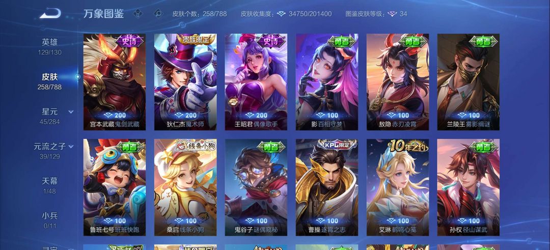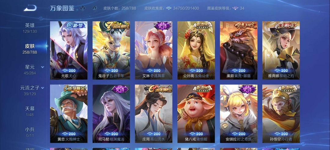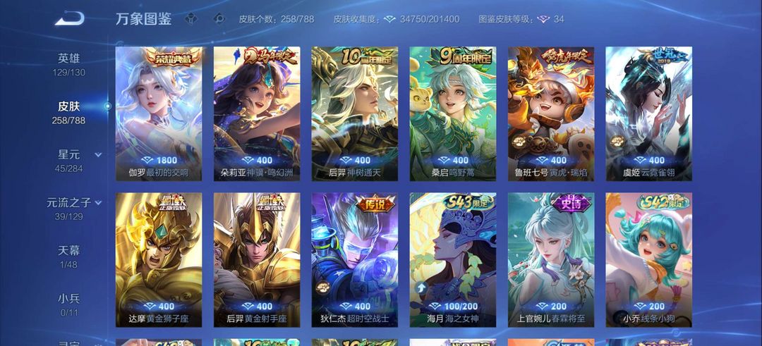 伽罗最初交响,后羿有黄金射手座典藏1,皮肤有258个皮肤,