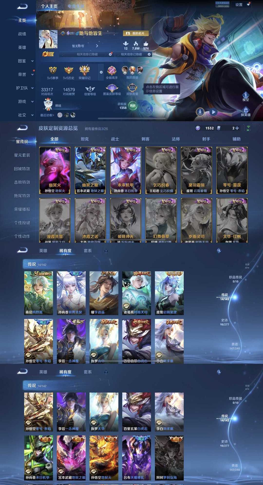 装备描述:无人敛100%上号 V8 333皮肤3典藏3星元 李白鸣剑猴子典藏 干将高渐离孙尚香赢政4内测零号赤炎神 威凤求凰