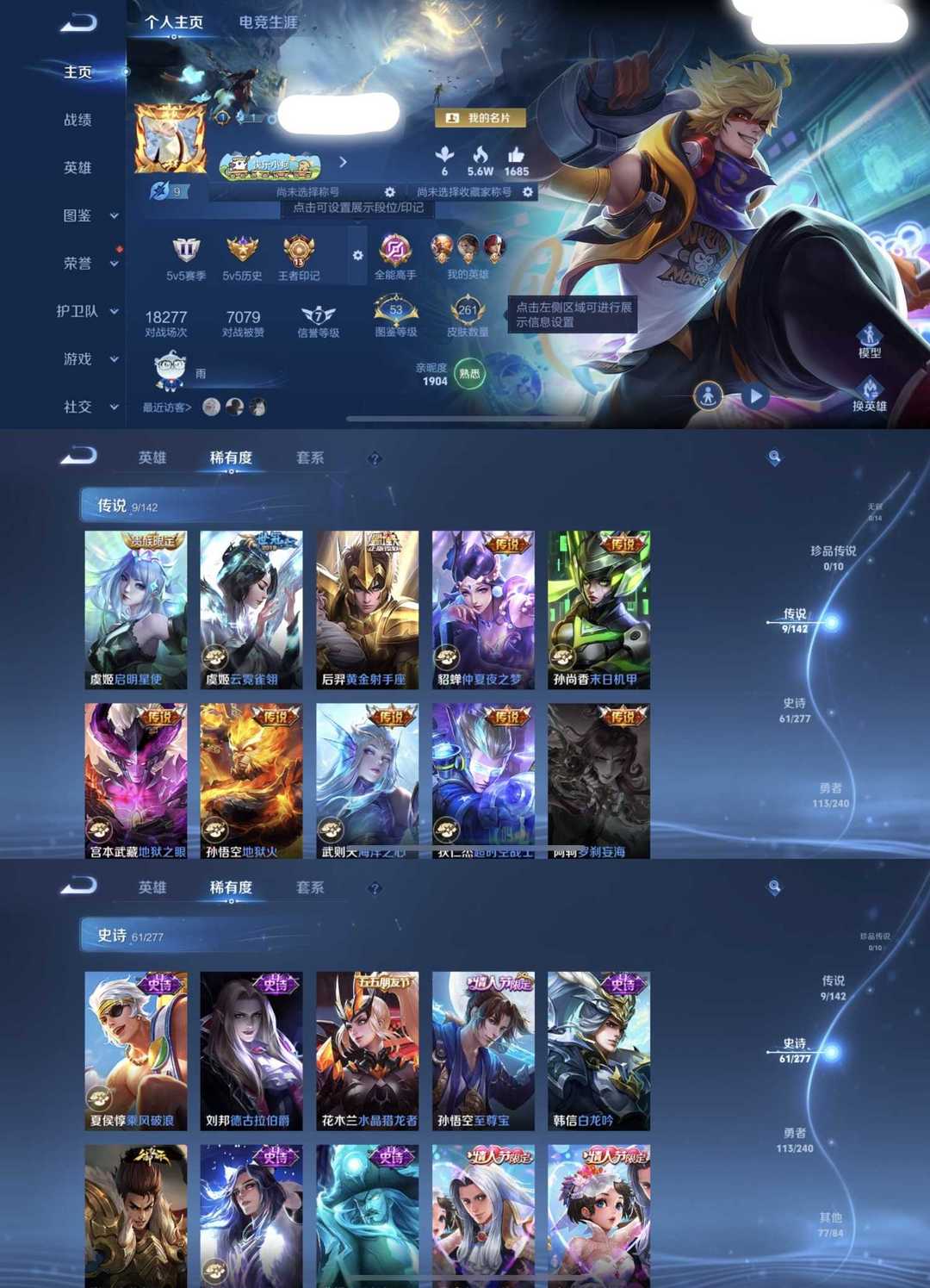装备描述:秒上号100%上号 V8 261皮 全息碎影云霓雀翎李小龙天狼狩猎者大圣娶亲冰霜恋舞区青春决赛季至尊宝