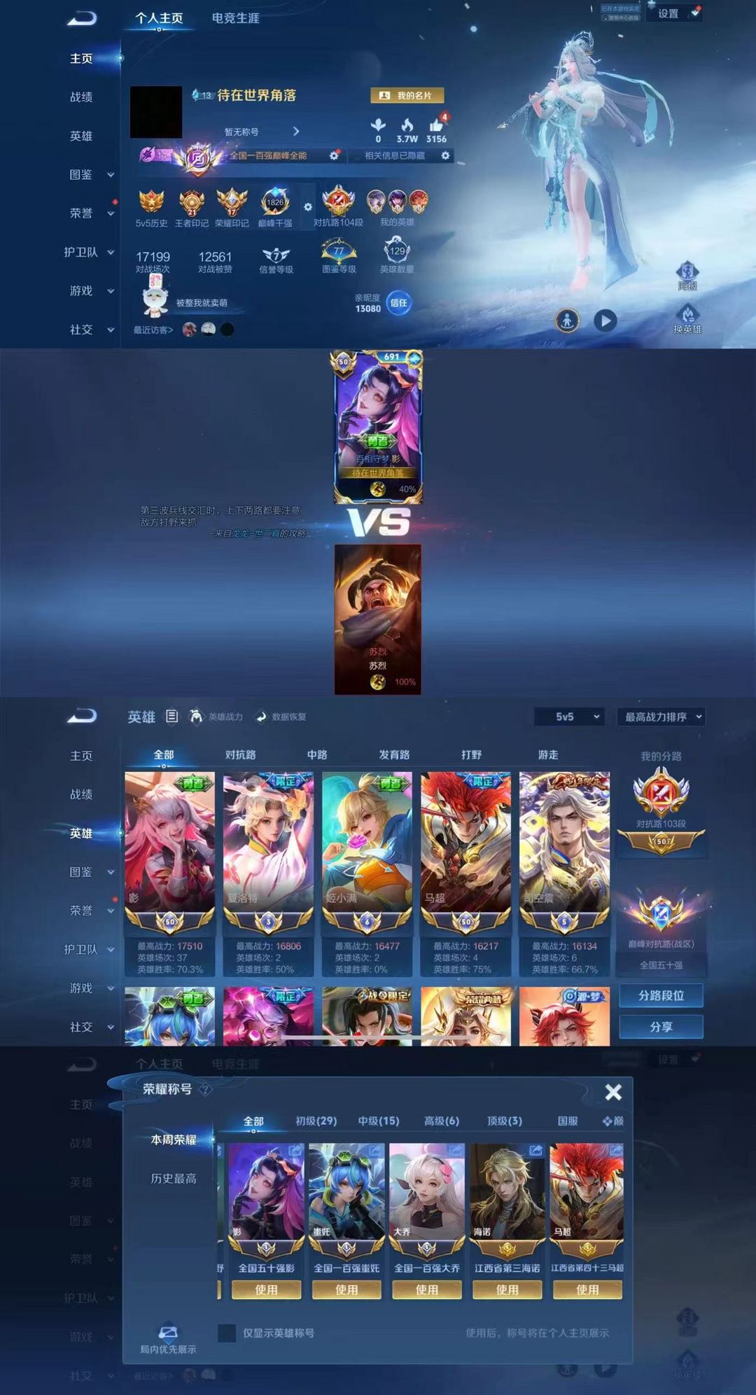 四月在榜国服镜澜裴擒虎⚡️巅峰前十国服猴子香香阿离马可⚡️老虎马超木兰138段