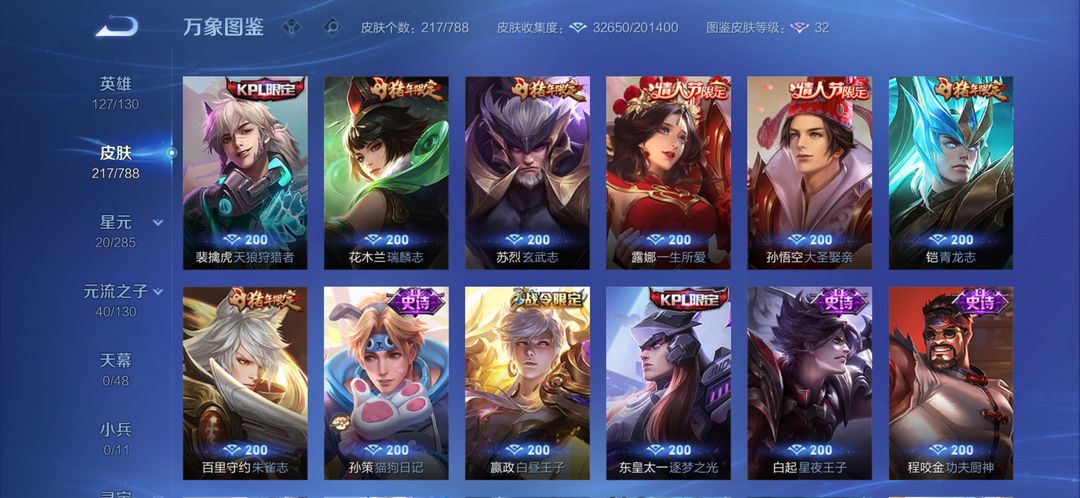 V8捡漏带妹号❤️李白孙尚香典藏❤️马可年限❤️玄策白虎志❤️猪年套❤️