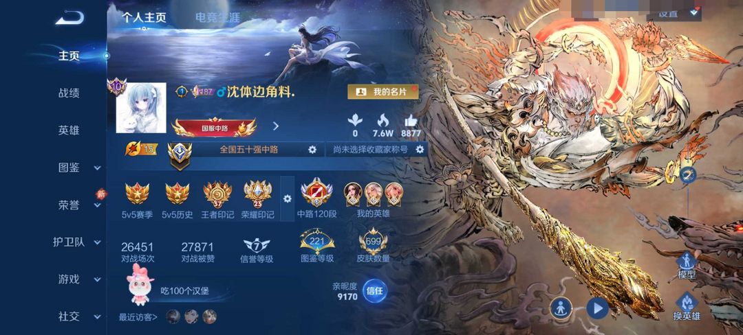 正式服120段在榜百段中路✨顶尖法王高胜率⚡猴子无相新皮❤️满典藏满无双✨中路天花板历史5个2万战力
