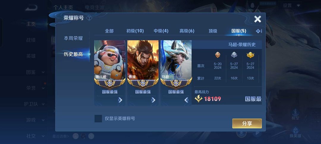 抢先服需要更新版本⭐1月小国曹操狂铁关羽猪八戒⭐浙江第2对抗路⭐1w8国服马超❤️可排位