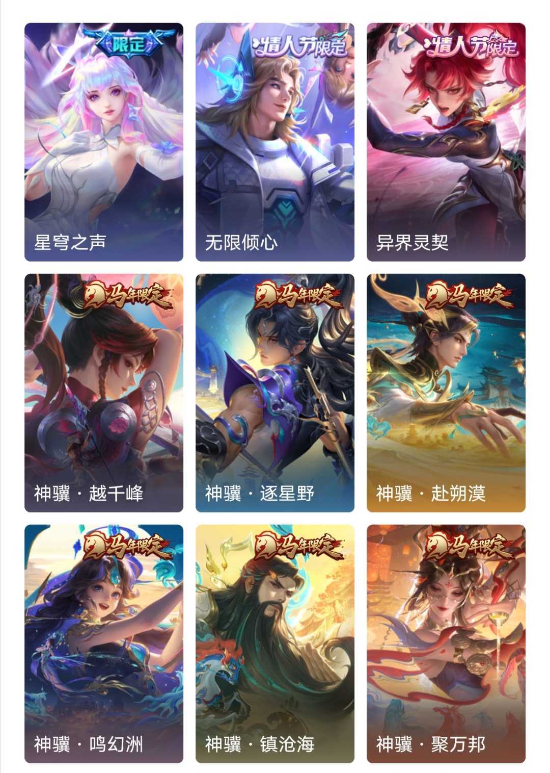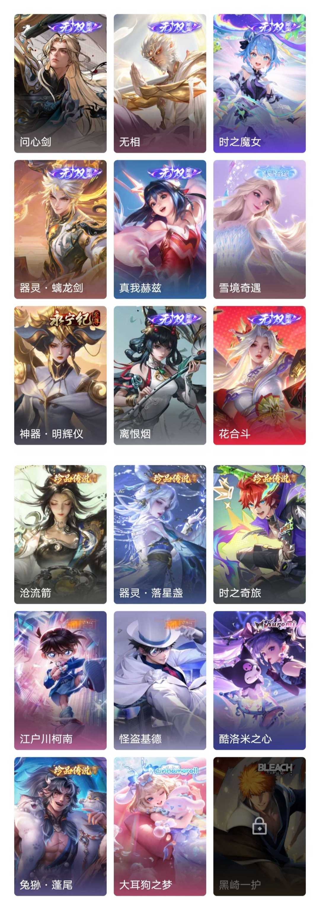 11典藏10无双8珍品120传说♥颠倒童话♥问心剑♥沧流箭♥六马年限定♥异界灵契♥柯南基德♥最新皮♥