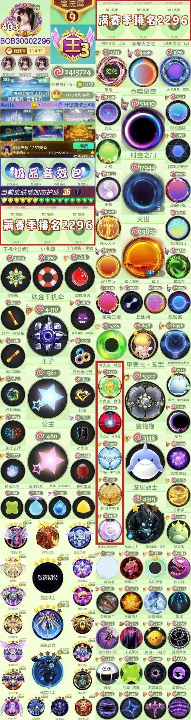 ❤满赛季2296名王静谧空间❤鲨饱饱、王子公主、时空黑洞、圣兽玉璧、幻化甲壳虫、敬请期待、死亡骑士