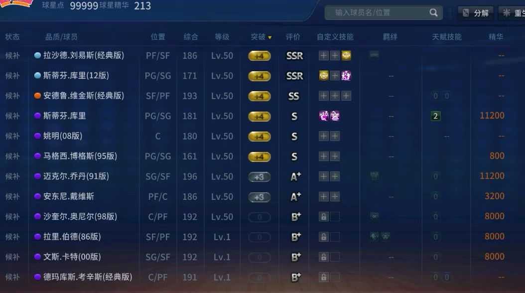 有会员【UR最强经典邓肯❤️UR詹姆斯杜兰特乔丹狼王】❤️S08姚明超多非卖❤️阵容豪华爽玩