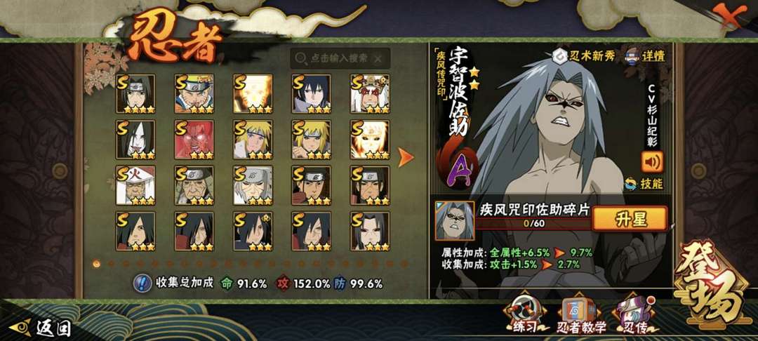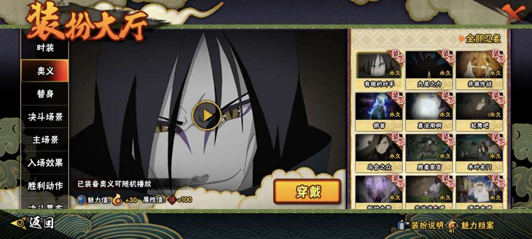 装备描述:鹰佐★黑土★新春止水★漂泊扉间★长门★博人传达鲁伊★禁止开挂,后果自负