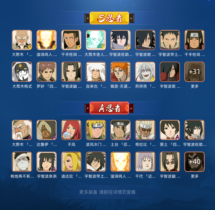 装备描述:✨47S56A✨2600w✨九喇嘛水门✨漂泊带土✨须佐止水✨天道超✨忍战带土