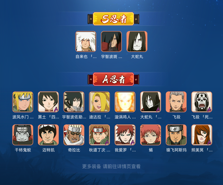 装备描述:大号有骨架晓蛇黑土秽土迪达拉照美冥,小区有亲年水门