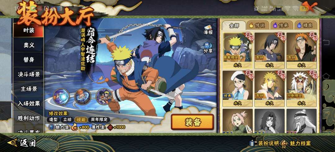 装备描述:超多热门忍者,热门通灵和密卷,最新的仙人巳月