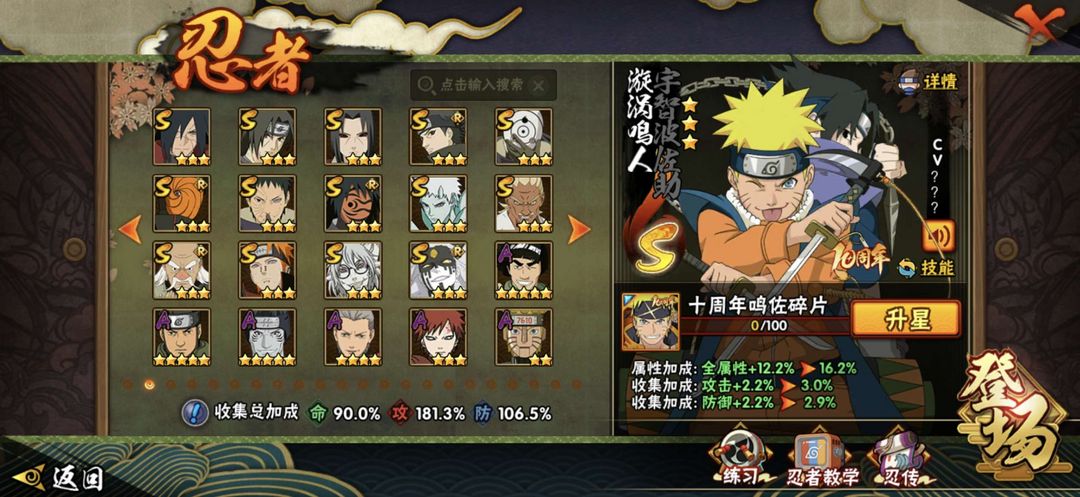 装备描述:34S 45A 207忍 十尾带土 五影带土 漂泊小南 漂泊佩恩 六尾鸣人 创立柱间 红面白面