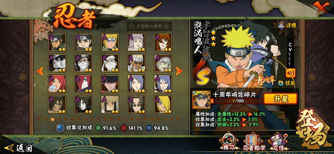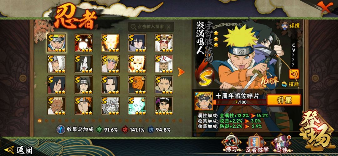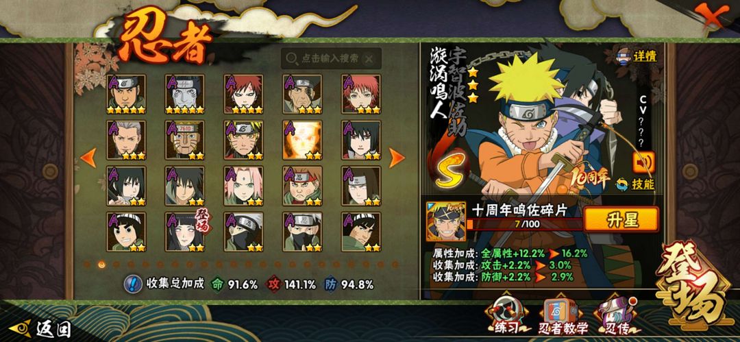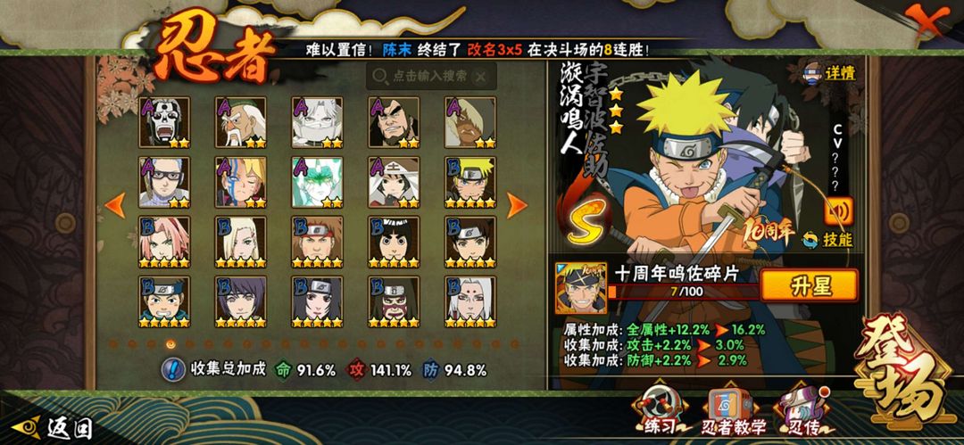 19S,50A,202忍者,晓创生迪达拉,解斑,暴怒六尾,大筒木舍人,漂泊再不斩,新春鼬,新春小南