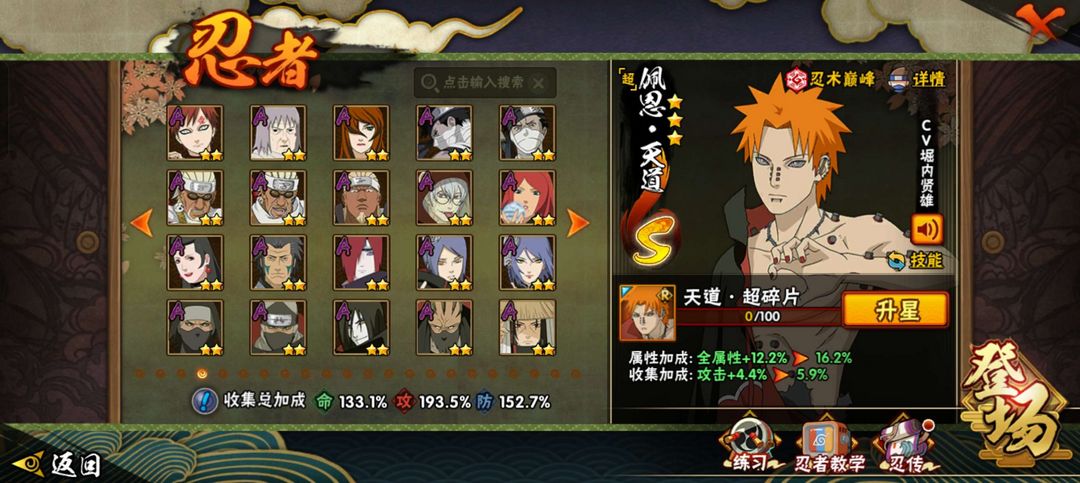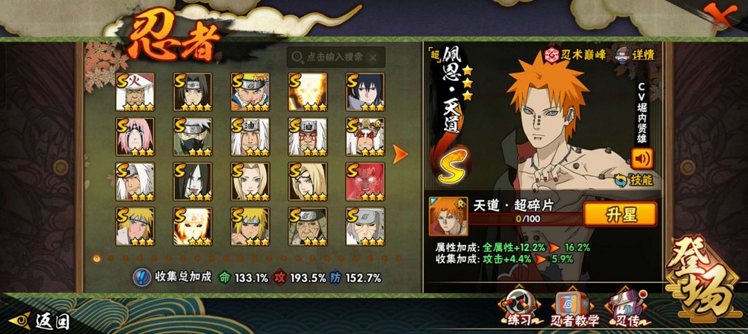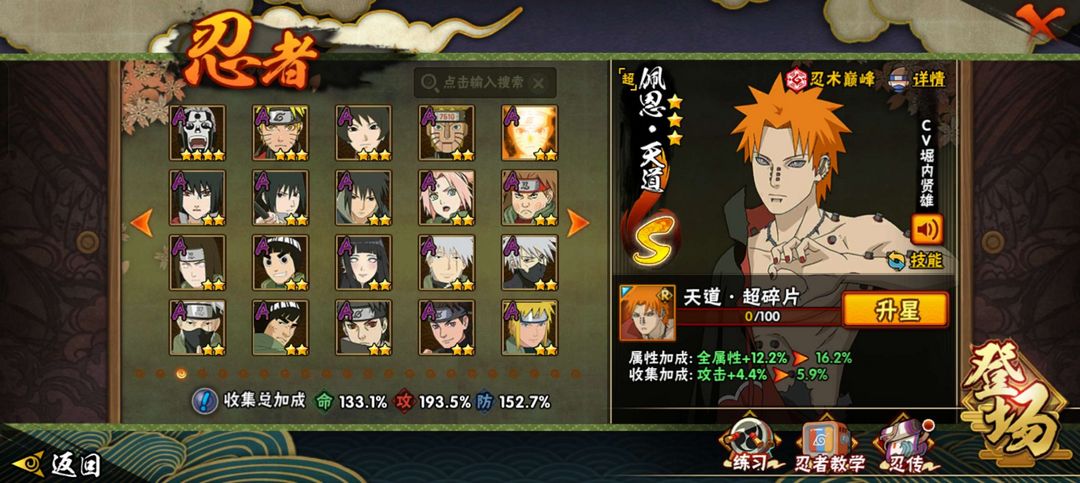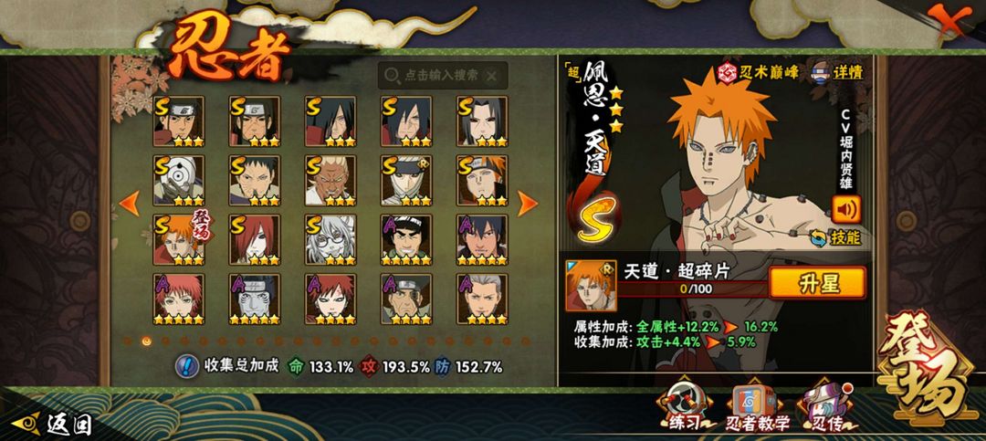 天道超、黄猿,紫狗,忍战带土,忍战雷,秽土鼬,须佐鼬,忍战樱,百豪纲,解斑,青水,死水,
