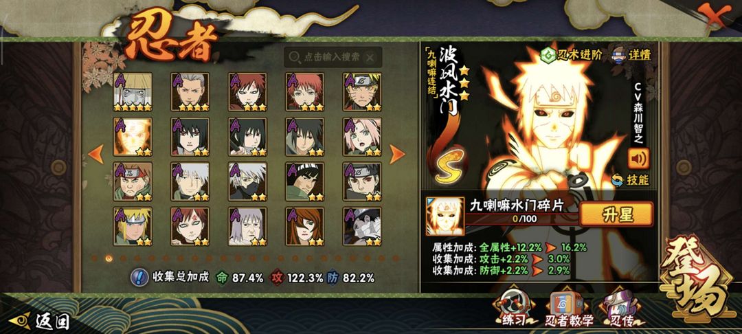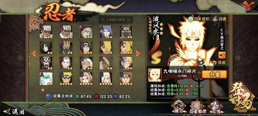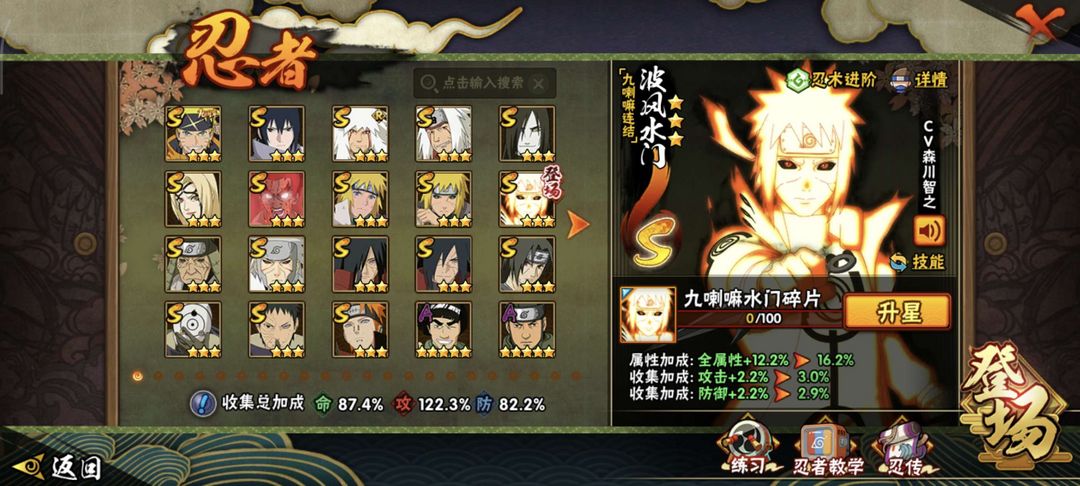 装备描述:18S 38A 忍战带土,秽土水门,金水,传自,秽土三代,秽土扉间,秽土斑,百豪纲手,解斑,死门凯
