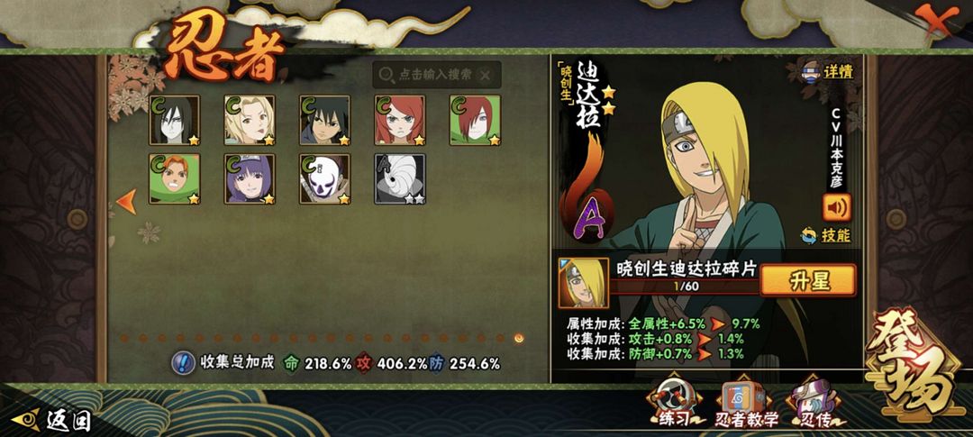 全忍者❤️晓创生迪达拉全套✨神驹阿斯玛✨4515w超核号✨全通灵全皮肤✨30个富贵奥义82级魅力值
