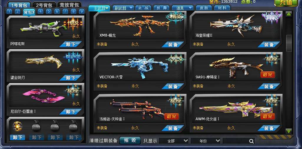 4阶镭龙,浩日,幽灭,星蕴套,双子座2,无敌套,5英雄满配,夜莺羊枪,海皇满配,狱龙破手炮鎏金