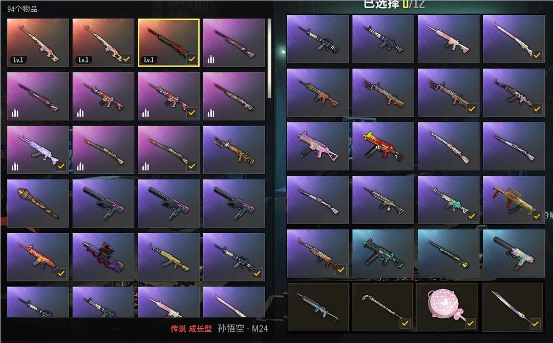 可排位✅2神器✅悟空M24✅粉梦德拉贡✅玩偶屋M762✅星期天M4✅蒸汽98K✅美人鱼套装✅绯红新星