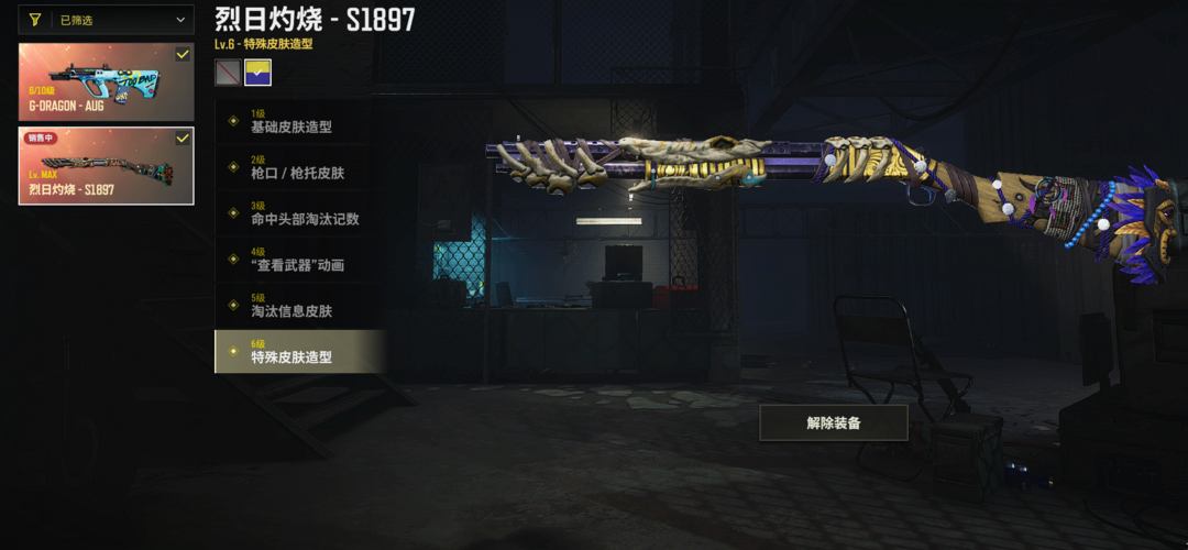 布加迪跑车✅(异色)满级⑥烈日喷子✅⑥级权志龙AUG✅拉风龙✅白战神✅黑鬼