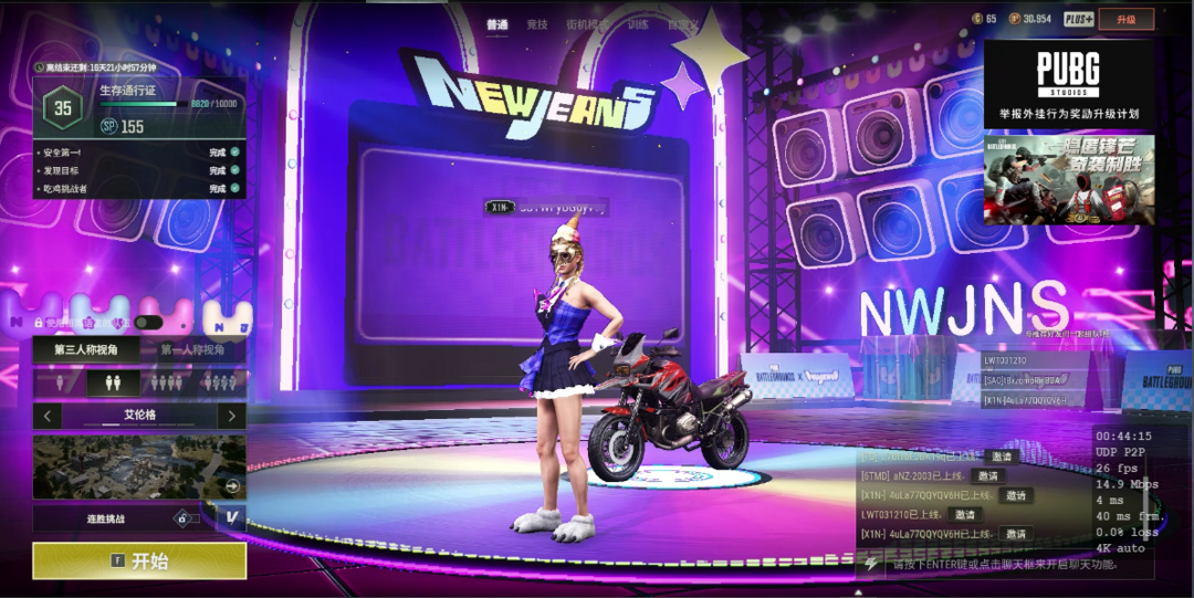 装备描述:保时捷卡宴★炫酷女团大厅【2神器★四级恶魔ACE32★妖魔之触-ACE32】白熊脚★牛魔王套★黄铜鸟嘴套★疯狂患者套装★字节意志套装★朱莉潜行套★绒毛恶魔套/芭蕉扇★霓虹之星★SCAR★L✌弥诺陶洛斯MINI★无信号S12K✌十字军SKS★搅局者MK12✌彩糖M416★魔女M762