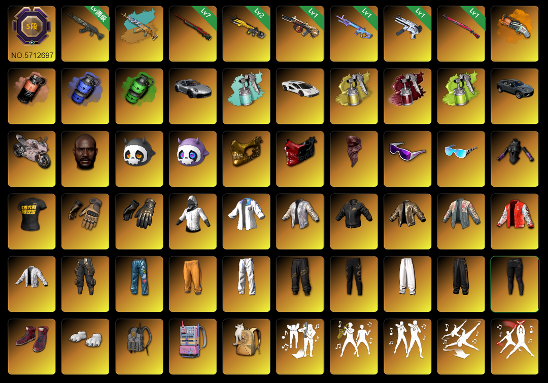 保时捷兰博杜卡迪✅11神器⑩级异色青龙✅7级悟空✅小兔mk✅午夜98k✅烟枪彩烟✅金面滑雪镜白运动