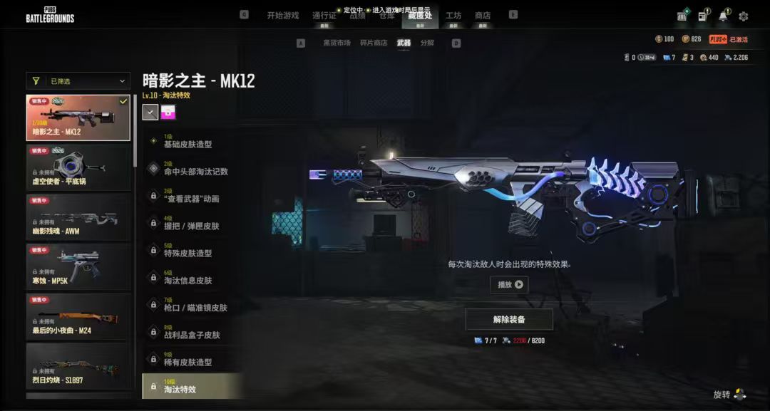 装备描述:二级密码75567769保时捷911隐藏款四级暗影之主MK12白裙白战神黄东星魂AK橙子鲨鱼98K