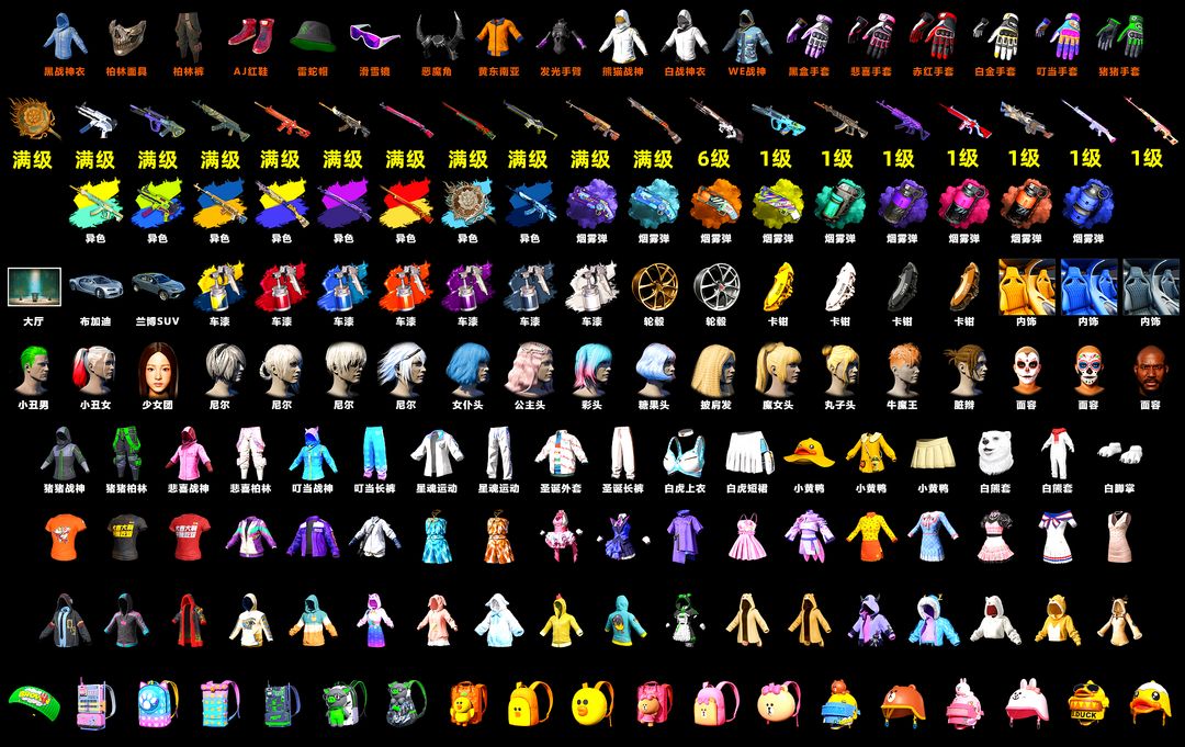 11满12异色三头柏林黑战神黄东星魂白运动发光手臂雷蛇帽黑盒卡崔娜黑鬼白熊恶魔角黄鸭布加迪兰博全彩烟