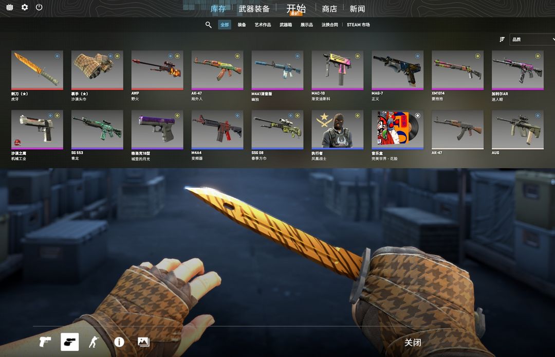 完美C❤虎牙刺刀❤裹手手套❤野火AWP❤幽独M4A1❤局外人AK47