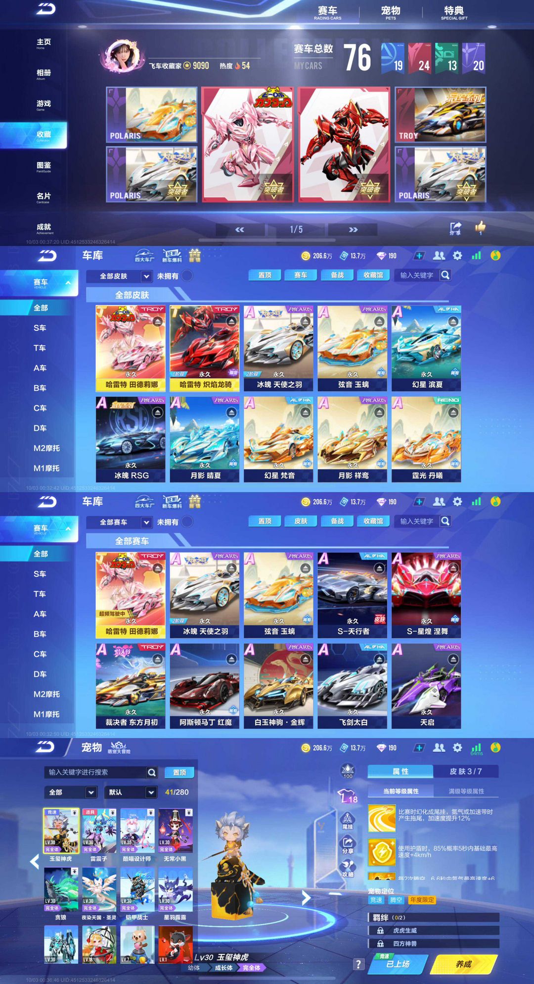 T粉皮哈雷特✨弦音冰魄天使之羽✨星煌天行者裁决者✨满配竞速⭐双性别幻蝶魔法套⭐贪狼⭐小黑⭐玉玺神虎