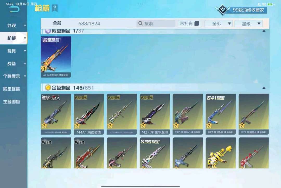 禾且前看描述!⭐官服v10号⭐140➕金枪⭐99级收藏家⭐超多绝版皮肤⭐多日漫联动道具