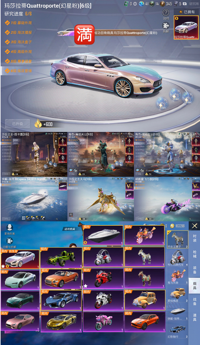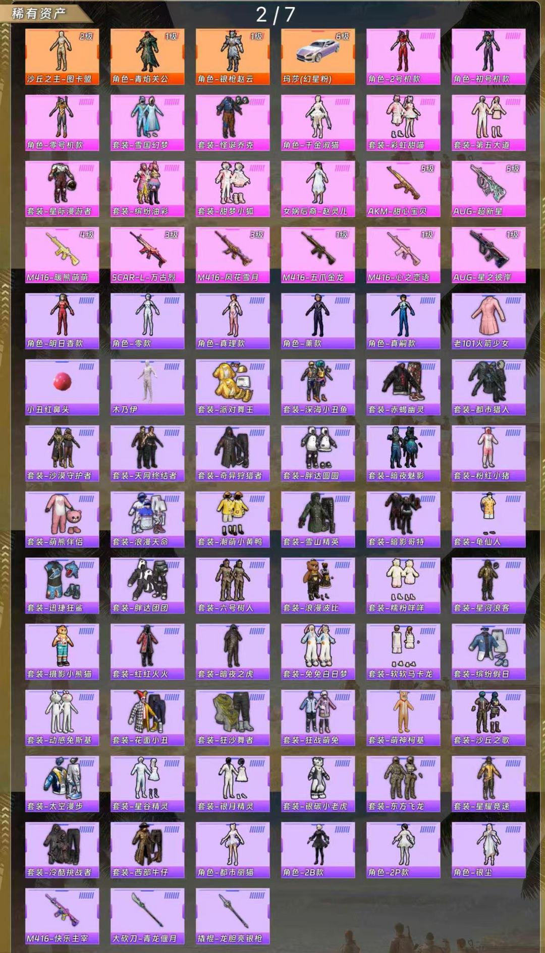 包天便宜 满素材 男神3件套+小丑+老款火箭少女 新老双木乃伊 满级玛莎 114套粉装 18载具
