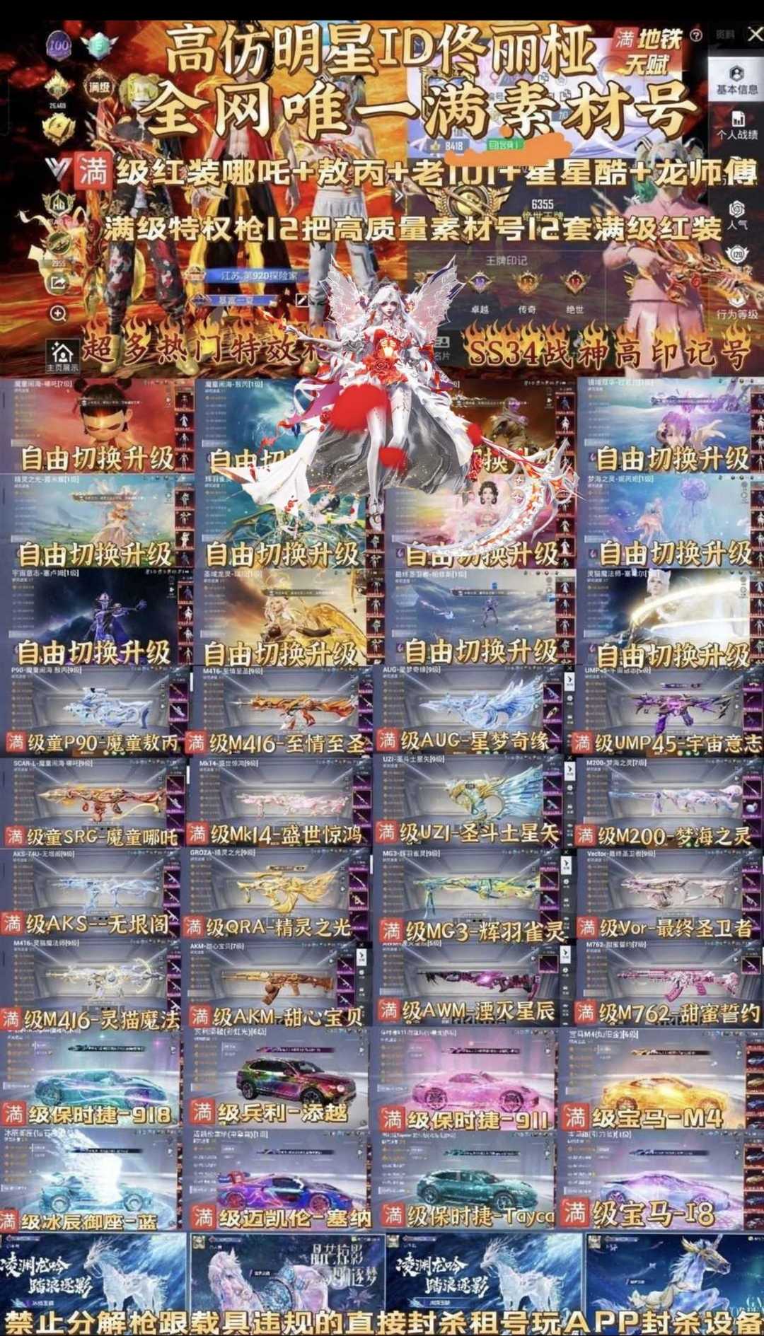 满级暮色玫影素材搭配/老101/敖丙/无垠阁/高印记/满级保时捷/满级宝马/12把满级特效枪
