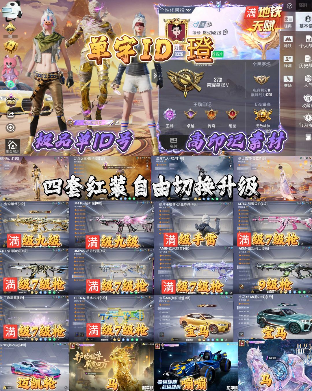 单字ID璒 满级红装/满级超新星/满级SR金蛇镇世/信仰神谕/迈凯伦/盖世英雄/宝马M4
