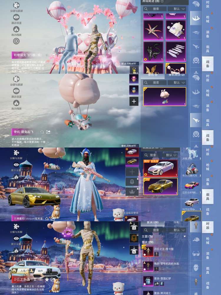 4级红装图卡盟木乃伊雪国螳螂火箭少女⚡️满级玛莎金兰博多满级特效枪✨僚机物资满级飞行器✨