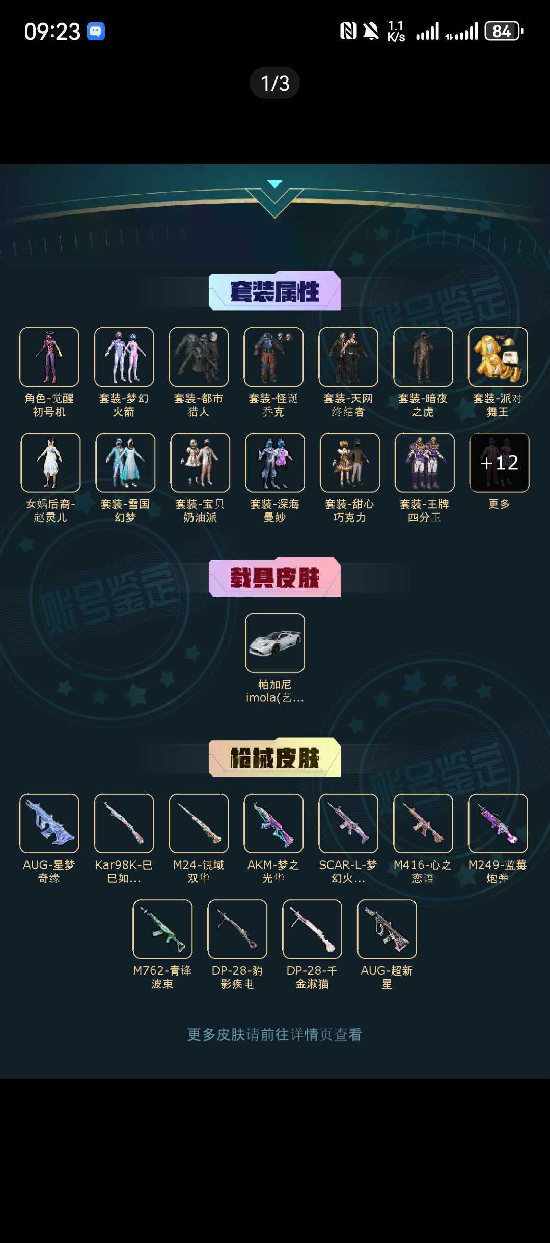 全素材/满级星梦/地铁满天赋/小丑/冰雪/巧克力/火箭/暗夜之虎/都市/寒蝎/金鞋/天网/巡查衣/卤