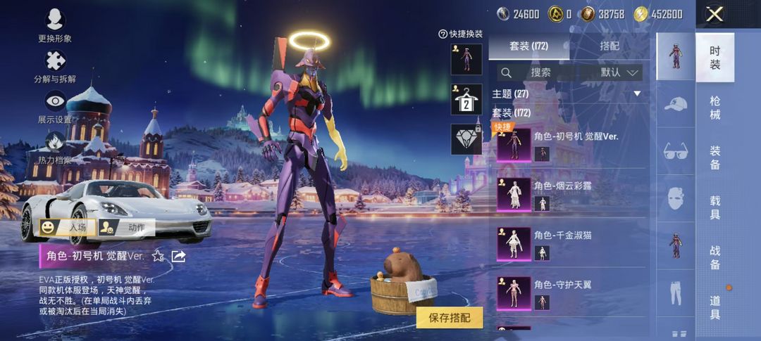 装备描述:和平精英-保时捷918Spyder 觉醒初号机 千金淑猫 都市猎人 火箭少女