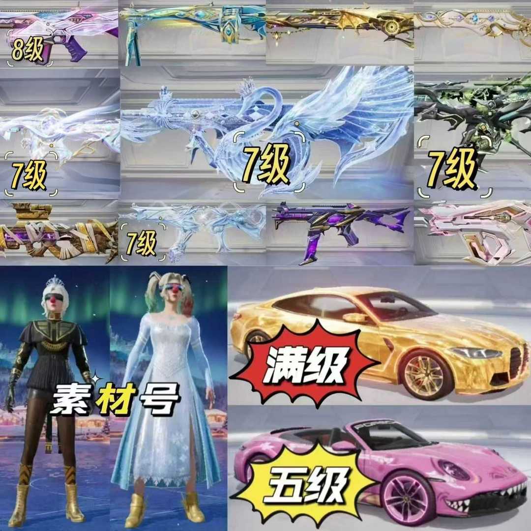 素材号冰雪小丑激光眼罩金鞋/地铁满天赋/满级宝马五级保时捷/11把新9级枪/星梦奇缘无垠阁辉羽雀翎