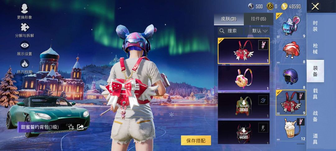装备描述:m4心之恋语,阿斯顿马丁轿车和吉普车,套装天使彩虹糖,极致幻想,暗翼战神,骨龙祭渊,双飞行器