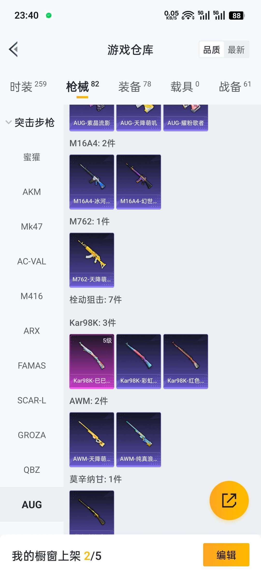259时装,82枪械,78装备,可排位,蓝色初号机,精灵梦叶罗丽三紫皮
