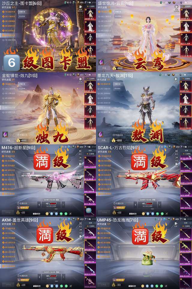 6️⃣级图卡盟云鸾烛九敖渊木乃伊/满超新星M4/满烈焰scar/满盖世AKM/5级路斯特吉普轿跑