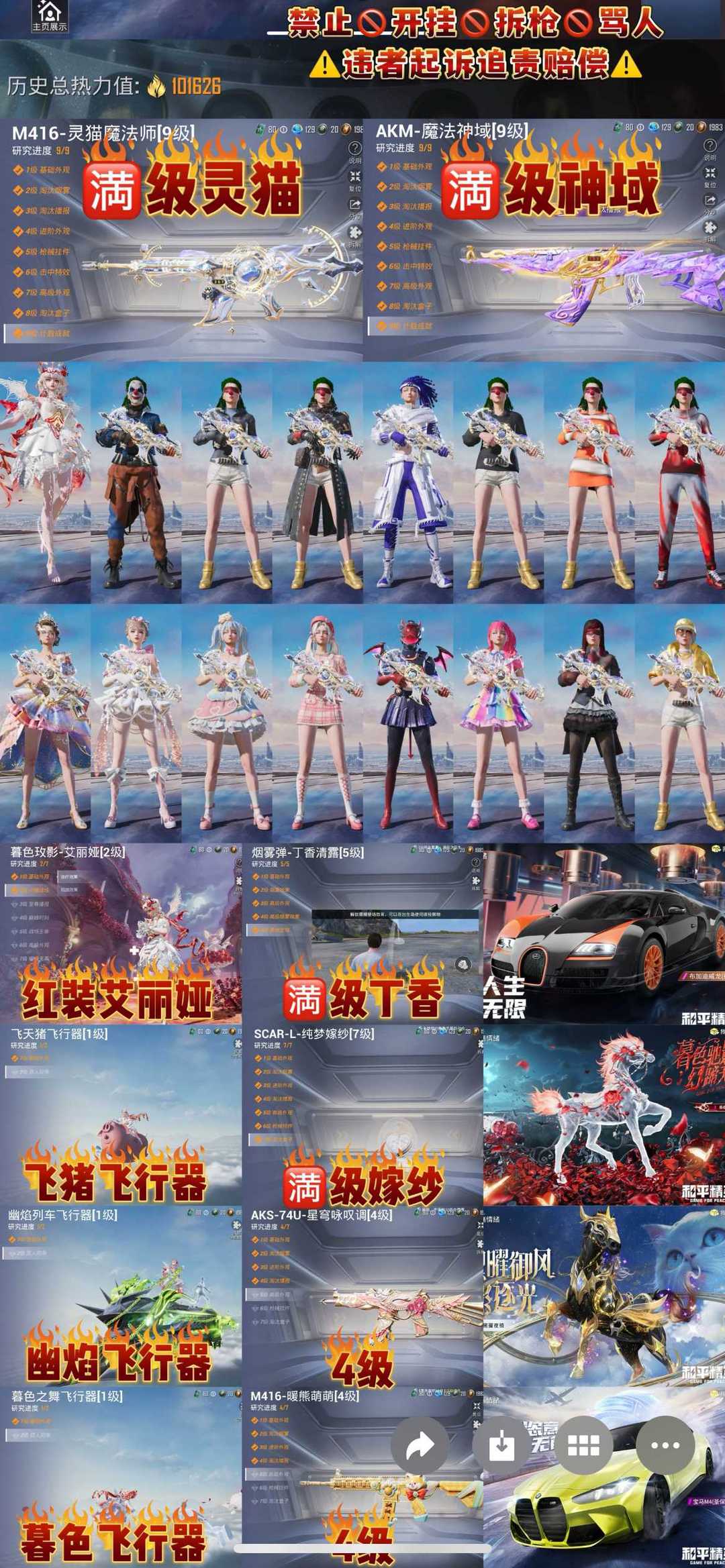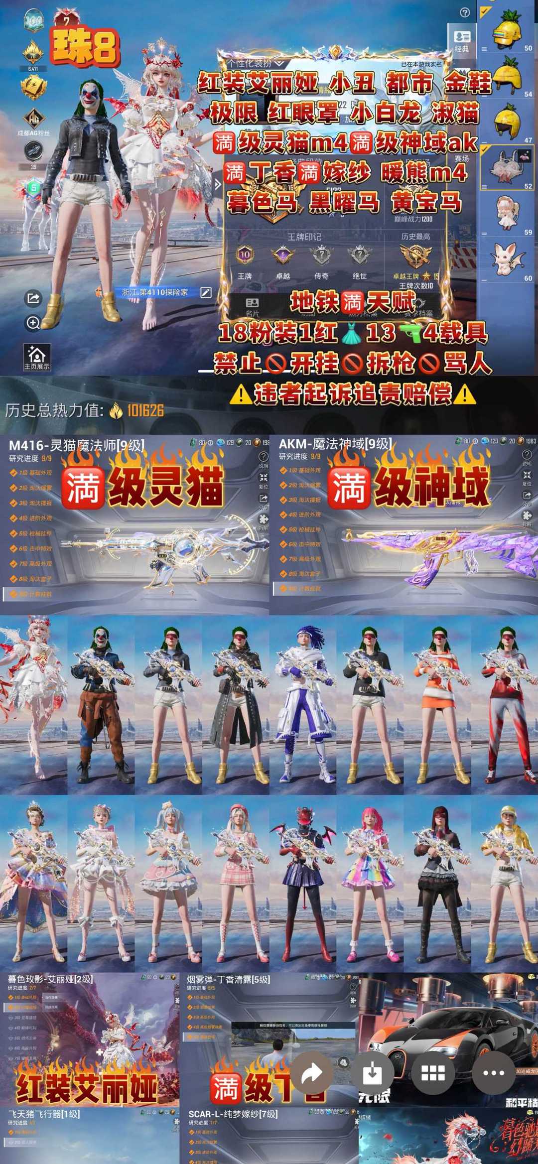 限制: 租号20次及以上 |装备描述:此号当地公安数据中心已备案 ⚠️请各位义父爱惜,请勿开挂 坐挂车拆解枪械和车辆 ,都属于破坏计算机法和故意损坏个人财产,违者需要赔偿损失。不要以身违法,伸手必究。不要给自己留下污点,喜欢关注收藏不迷路。 ❌拆卸枪械载具永久拉黑下单默认认同此协议