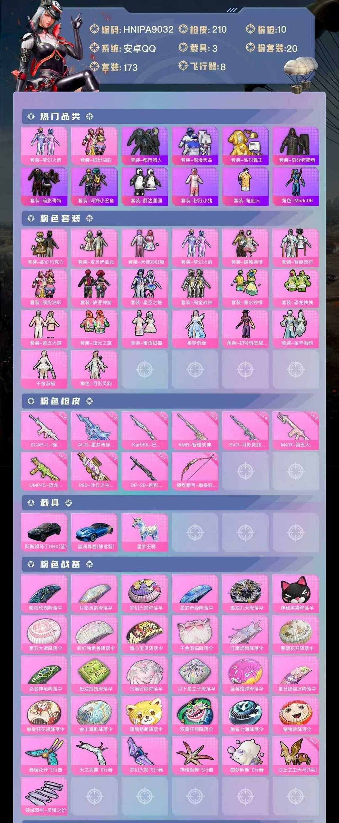 限制: 租号30次及以上 | 撤单率<30%才可租用此帐号装备描述:[17粉枪 16粉装 1载具]璀璨♥⑥级图卡盟-敖渊-瑞拉-妮苪妲-小番茄-都市-金鞋-浪漫-激光眼-新101
