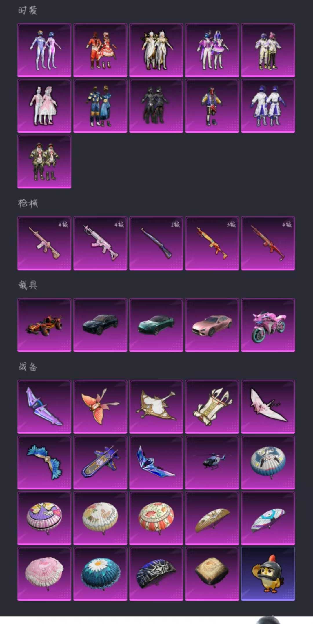 玛莎拉蒂阿斯顿马丁⭐️梦幻摩托龙骨梦幻火箭⭐️锦绣火鲤潮汐统领古堡领主⭐️11粉装5特效枪5载具